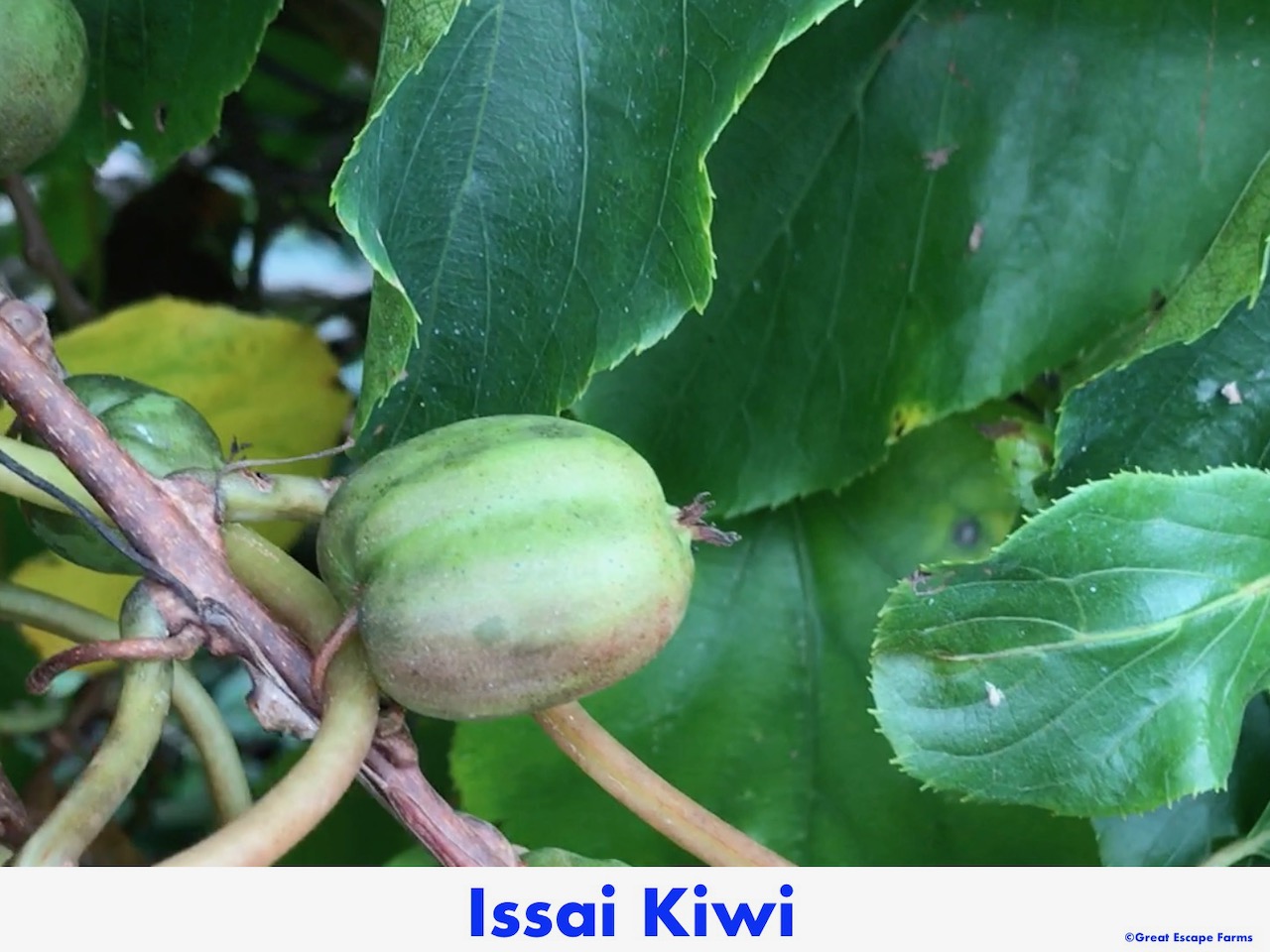 Sorry we do not ship. Kiwiberries Issai Actinidia arguta is a female variety of this perennial hardy kiwi vine which produces grape-sized berries with an intense tropical taste that do not require peeling. Sweet round light green fruits with green-to-yellow flesh. Despite claims of self-fertility, a nearby male kiwiberry vine is required for fruit set.